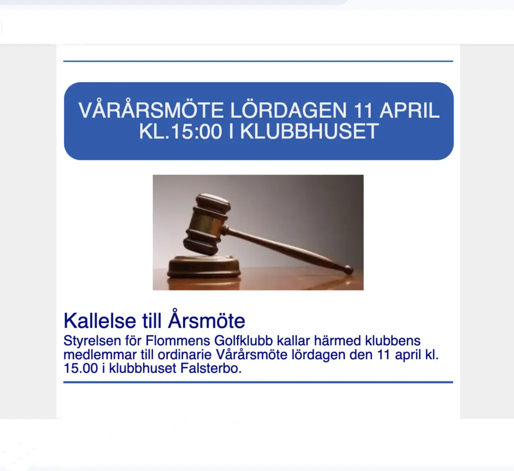 Får du förhinder eller ändrade planer ska du avboka din starttid så snart du vet att du inte kan spela. Detta för att ge möjlighet för andra medlemmar och gäster att boka in sig på den lediga starttiden.